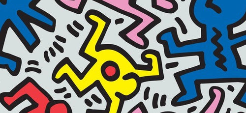 1980年に、ニューヨークの地下鉄にてグラフティ・アートを始め、コミカルで誰もが楽しめる作風が評判となり、一躍キース・ヘリングの名が広がりました。その後、1982年にドイツの国際展ドクメンタに参加、1984年にヴェネチア・ビエンナーレに出展するなど、次々と展覧会が行われ、国際的にも高く評価されました。